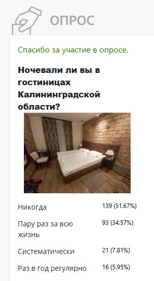 49% респондентов вообще никогда не ночевали ни в одном из отелей Калининградской области.