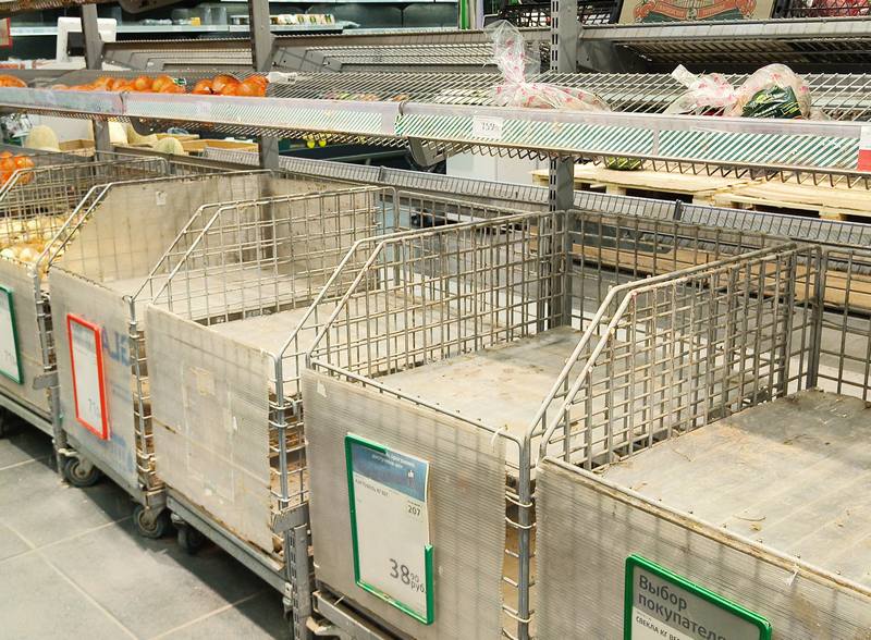 Уже к обеду на полках осталась примерно 10-я часть от того, что было. Народ разобрал все тележки и корзины у входа. Выбрали под чистую даже картофель с луком и морковкой. В овощном отделе остались одни арбузы.