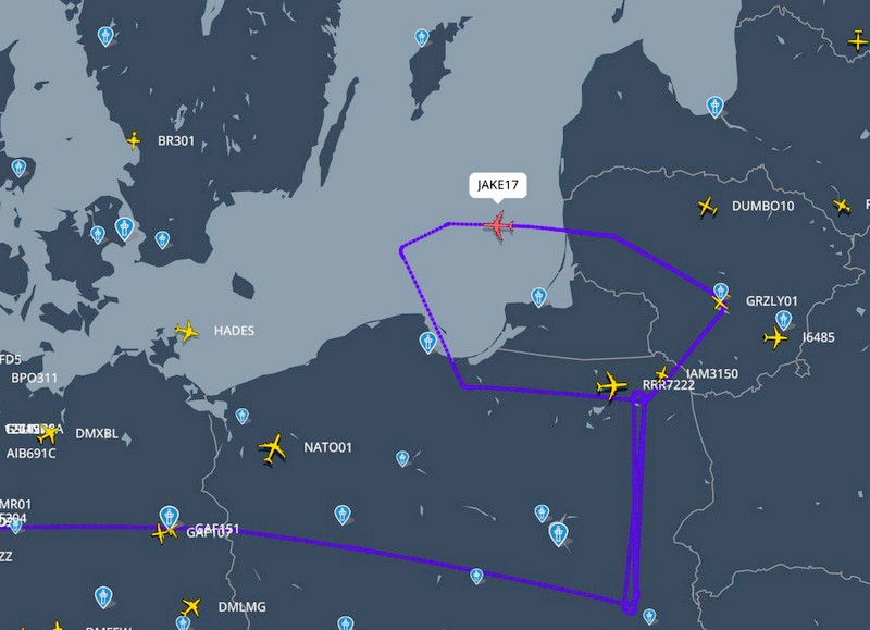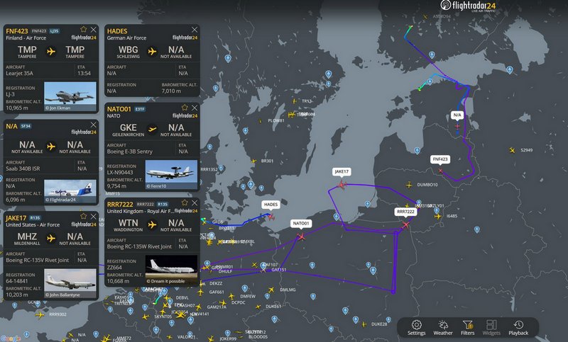 Ещё один самолёт-разведчик Boeing E-3B Sentry с базы ВВС США в Гельзенкирхене направлялся в сторону Калининградской области для осуществления схожих операций, согласно данным с Flightradar 24.