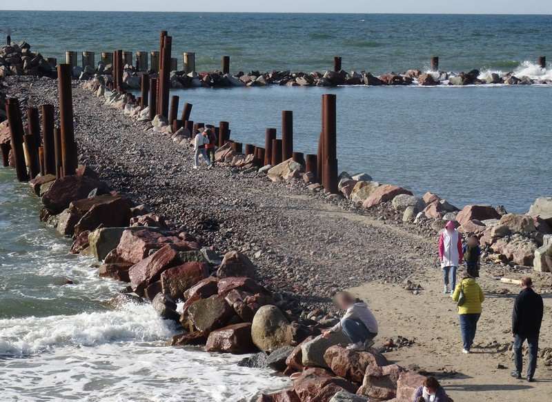 Летний разгул по замершей строительной берегозащитной площадке переходит в режим свободных прогулок. Образовавшийся искусственно узкий полуостров с трёх сторон окружён морем. Море меняет высоту и скорость волны ежечасно. Туристы и местные жители взбираются на отвалы крупных камней на волноломе и рискуют жизнями ради красивых фотографий.