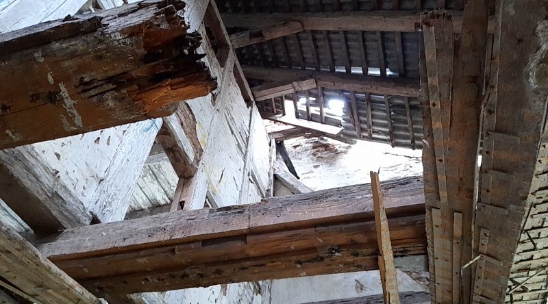 По чистой случайности пирушка не переросла в пожар. Впрочем, это ещё возможно, ведь доступ в здание по-прежнему открыт. Открывается и кровля, через которую внутрь попадает вода. Влага подтачивает строение изнутри.