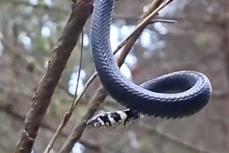 Девушка из Черняховска Калининградской области столкнулась со змеем, демонстрировавшим ей загадочные символы, балансируя на ветке.