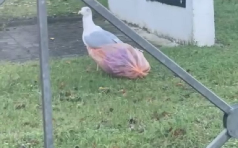 Пернатое оказалось в беде у Памятника лётчикам Балтийского флота, на перекрёстке Советского проспекта с улицей Гайдара. Большая серебристая чайка растерянно бродила с приклеившимся к хвосту полимерным изделием и пыталась улететь – тщетно. Наполненный отходами пакет мешал подняться к небу. Крылатое создание жалобно заглядывало людям глаза: помогите мне!