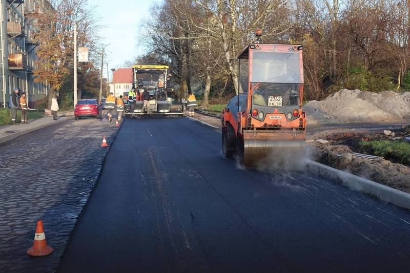 В Черняховске Калининградской области закатывают асфальтом ещё одну улицу. Ей оказалась ул. Пугачёва. 1 ноября 2025 года у дымящегося нового дорожного покрытия побывал глава округа Виктор Вобликов.