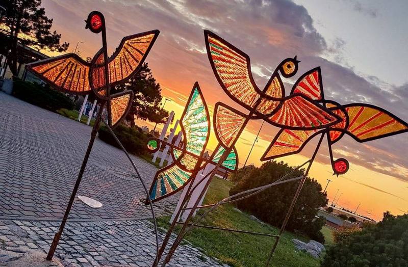 Подрядчик буквально перелопачивает променад и все подходы к нему, поэтому полупрозрачные силуэты пернатых пока «на передержке». Муниципальная газета «Волна» написала, что после завершения капитального ремонта пешеходной среды арт-композицю вернут. Права, к месту её прежнего расположения и пройти-то пока нельзя. Всё перегорожено.