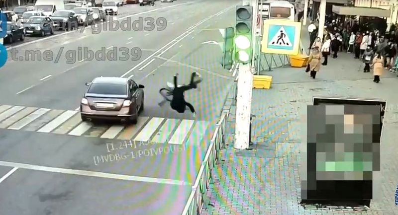 Видеокамера «Безопасного города» зафиксировала момент наезда. От удара о машину подростка подбросило над дорогой и откинуло на тротуар, велосипед развалился на части. Стоявшие на остановке люди застыли в изумлении.