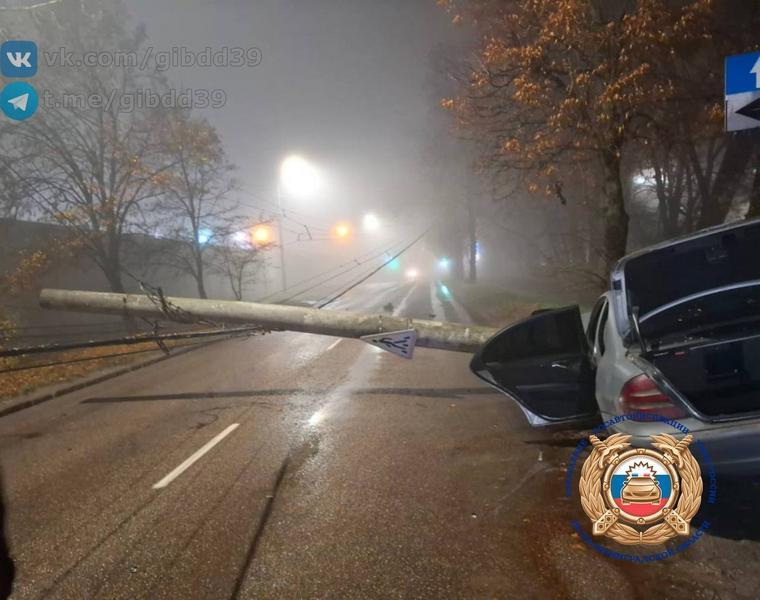 Туманным утром в понедельник, 17 ноября 2025 года, на дорогу на Советском проспекте в Калининграде упал бетонный столб.