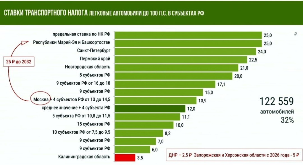 Как рассказывал «Русский Запад», наибольшее относительное повышение коснётся с 2026 года (платить с 2027 года) самых малообеспеченных владельцев автомобилей с мощностью двигателя до 100 лошадиных сил. За каждую «лошадку» под капотом придётся платить не 3,5 рубля, а 6 рублей – рост сразу на 71%.