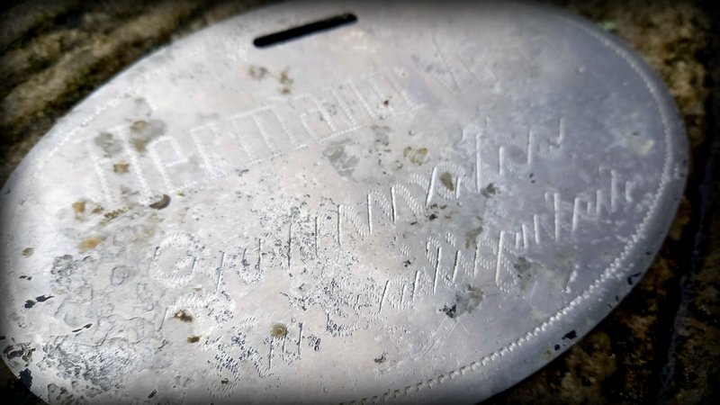 Овальный плоский металлический предмет музейщикам подарил их друг, имя которого они не называют. На алюминиевом изделии конца 19 - начала 20 века нанесено: Херманн Фосс, Грюнвальде, район Хайлигенбайль (Hermann Voss, Grünwalde, Kr. Heiligenbeil). Экспонат можно было бы назвать заурядной тележной табличкой, если бы не место его происхождения.