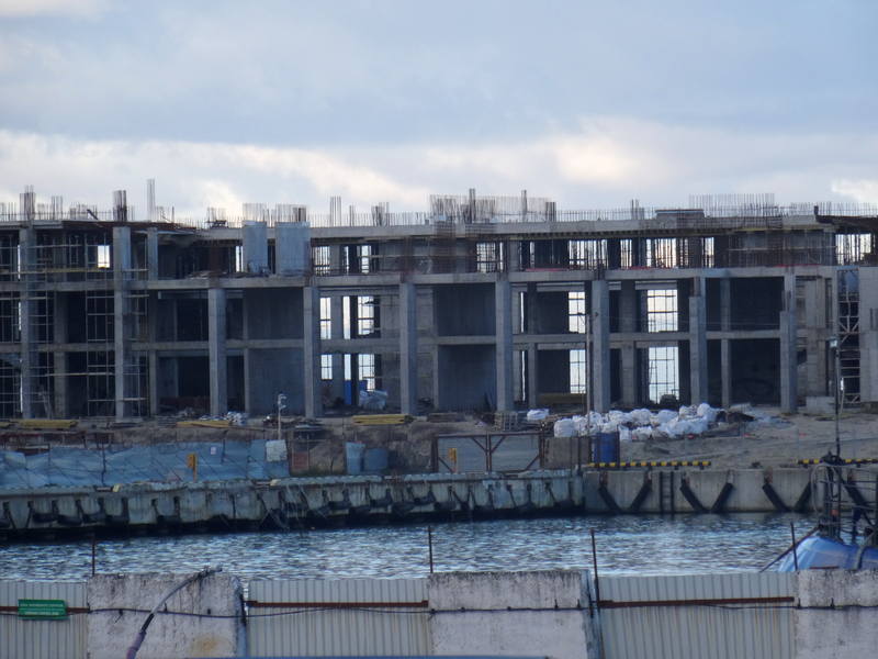 На стройке морского вокзала сейчас царит затишье. Предполагалось, что он со временем станет международным пунктом пропуска, и в Пионерский начнут заходить иностранные круизные лайнеры.