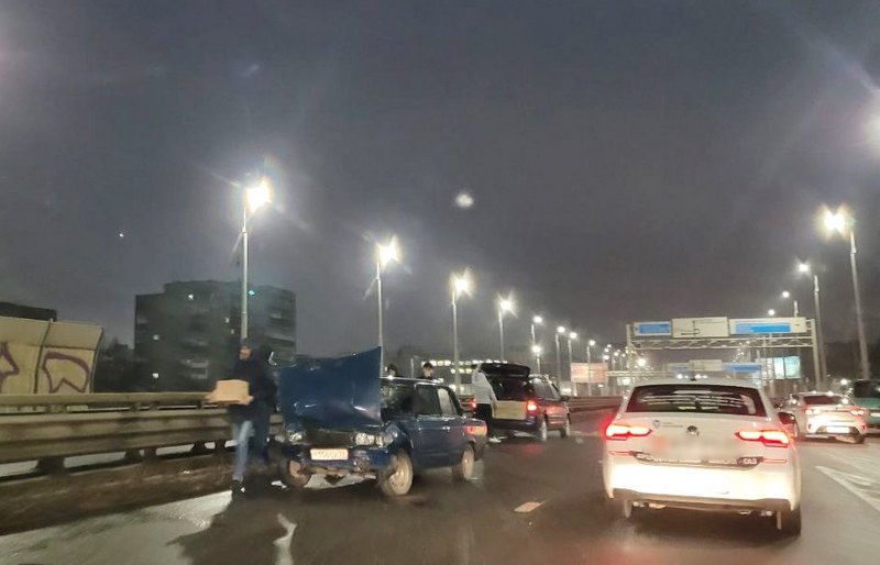 Около 7:30 в понедельник, 1 декабря, на Втором эстакадном мосту произошло ДТП при движении в центр города. Судя по разбитым автомобилям, участников аварии трое. По информации из соцсети, спровоцировал столкновение молодой человек на «Жигулях», его автомобиль от удара развернуло в обратную сторону.