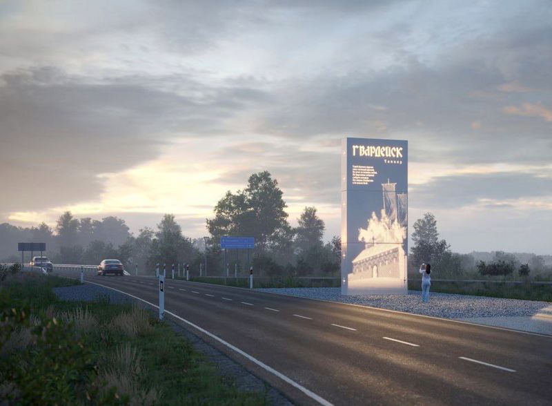 Как рассказала администрация Гвардейского муниципального округа, стела представляет собой вертикальный баннер из металлокаркаса с панелями со сквозной подсветкой в ночное время.
