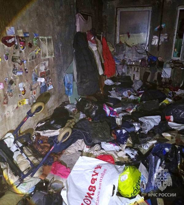 О возгорании в 2-комнатной квартире на первом этаже в экстренные службы сообщили в 20:45. Пылал матрас и бытовые вещи. Судя по фотографиям с места происшествия, комнаты и кухня были завалены всяким тряпьём, банками, бутылками. Стены без обоев, мебели практически нет. Кто-то из жильцов, видимо, пользовался коляской-ходунками, которая находилась на куче хлама. Пожарные успели вынести газовый баллон, предотвратив угрозу взрыва.