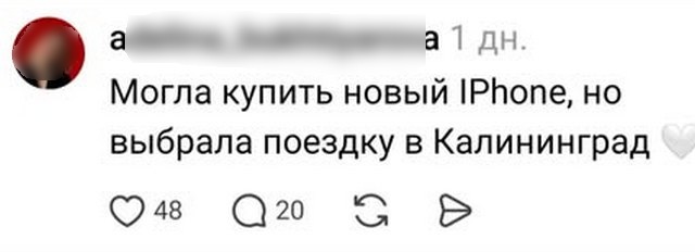 «Могла купить новый iPhone, но выбрала поездку в Калининград», - написала Аделина Б. из Санкт-Петербурга.