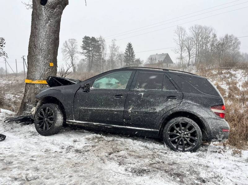 Водитель «Мерседес-Бенца GLE» врезался в дерево у дороги. Из машины смогли извлечь пассажира и передали медикам скорой помощи.