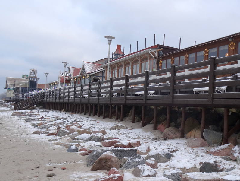 Несколько лет назад на том же месте и в такой же сезон другая женщина сломала ногу. Натоптанный до наката снег на деревянном настиле вдоль моря не счищают подолгу, хотя эта часть прогулочной зоны находится в частной собственности. Даже песком не посыпали.