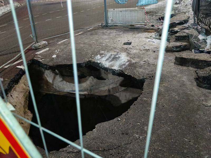Пересечение улиц Батальной, Судостроительной и Инженерной наполовину перекрыто. Работы там в разгаре. Оказалось, что причиной аварии стало частичное разрушение канализационного коллектора 1987 года.