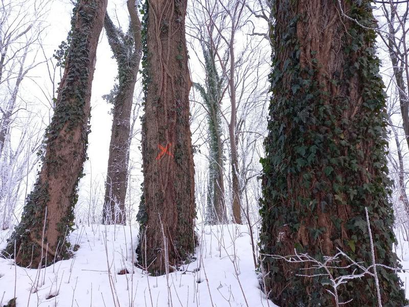 Нервозность местных жителей подпитывается тем, что метки появились на деревьях, которые являются носителями плюща Hedera helix, одного из немногих в нашем регионе вечнозелёных растений. По сути, это лиана средней полосы. На табличке, установленной с ведома городских властей при входе в лесопарк указано, что некоторым плющам этого вида там более 80 лет. Данный зелёный массив — крупнейшее в Калининграде место произрастания вечнозелёного плюща.