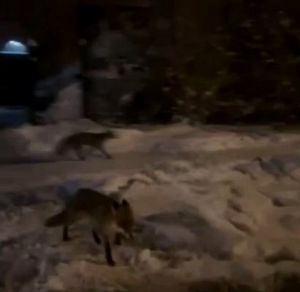 На улице Тельмана в Калининграде вечером заметили двух лис, которые деловито бежали в сторону Верхнего озера.