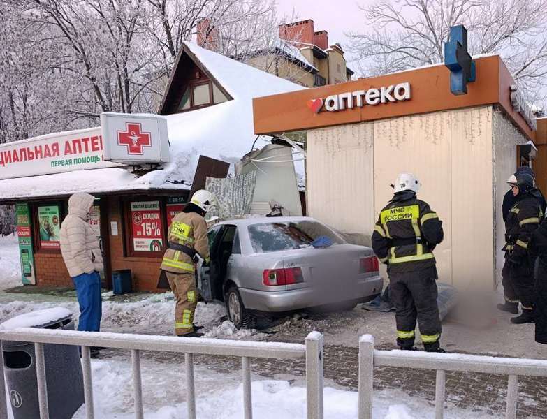 Около 9 часов на перекрёстке Калининградского шоссе и улицы Советской автомобиль «Ауди А6» вылетел с проезжей части на тротуар, сбил пешехода, затем врезался в «Социальную аптеку».