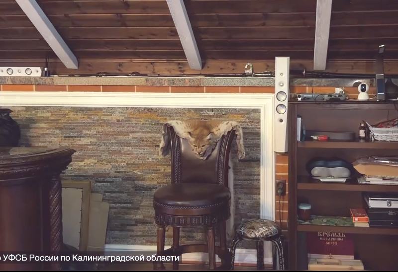 С первых же кадров на глаза попадается чучело рыси, висящее на кожаном кресле. В интернете можно купить буквально за 50 тыс. рублей имитацию чучела этого животного, занесённого в Красную книгу. Убивать его в Калининградской области нельзя. Зачем директор нацпарка украсил свой дом именно таким образом?