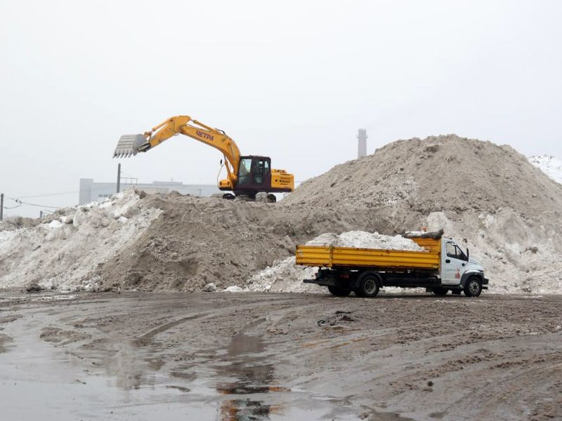 Как рассказала администрация города, понадобился экскаватор для его «более эффективного» распределения по территории. Высота свалки грязного снега, вывезенного с улиц города, достигла высоты 10 метров.
