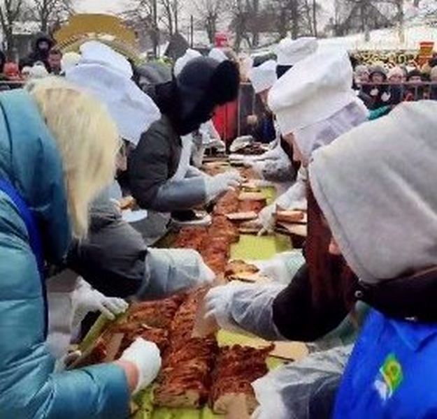 «Русский Запад» рассказывал, что громадный пирог пекли повара из нескольких гостиничных ресторанов. В паблике одного из отелей Куренкова утверждается, что выпечка была 20 метров 26 см в длину: