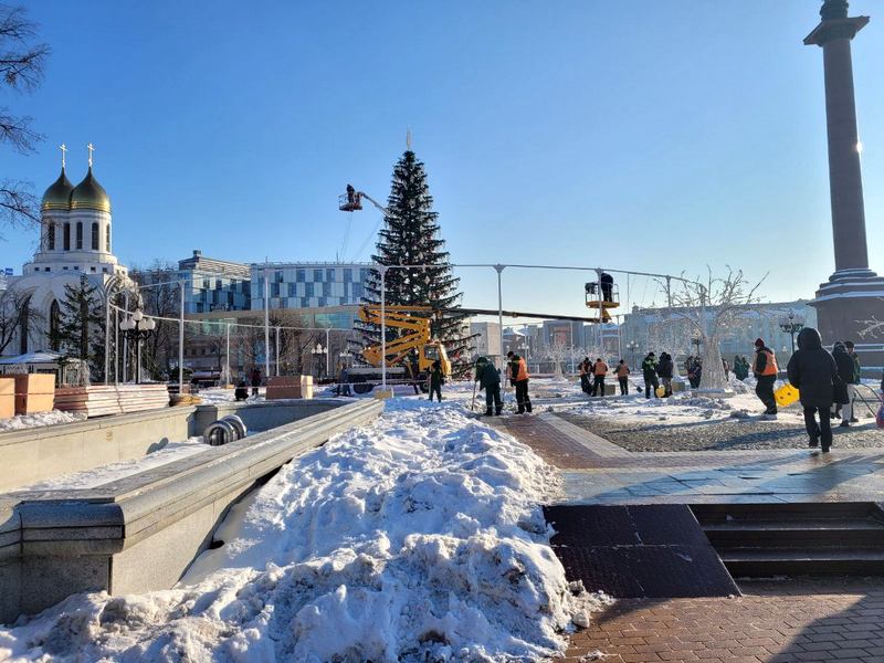 В Калининграде на площади Победы во вторник, 20 января 2026 года, начался масштабный демонтаж главной новогодней ёлки и всей зоны с иллюминацией вокруг.