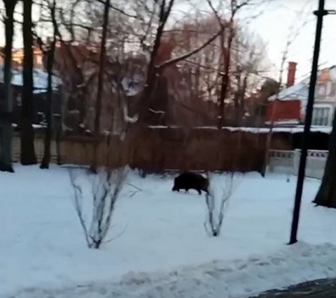 По Зеленоградску снова бегает дикий кабан. В прошлый раз вепрь посещал город в ноябре 2025 года и тоже наделал много шума.