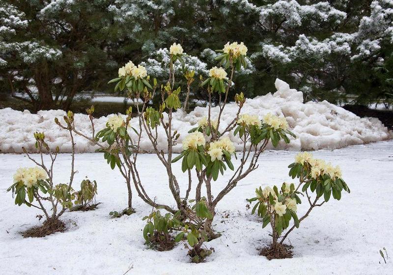 Вечнозелёные листья на фоне сугробов в январе 2026 года можно увидеть в Южном и Центральном парках столицы региона. Не меркнущими даже в мороз органами фотосинтеза обладают рододендроны. Конкретнее, разновидность «катевбинский грандифлорум». Его вывели в начале 19 века, на основе других сортов флоры того же азиатского вида. В каалининградской Дирекции ландшафтных парков сфотографировали торчащие из снега зелёные рододендроны и напомнили, что в дословном переводе это наименование означает «розовое дерево». Зимой их нормальное состояние выглядит как аномалия.