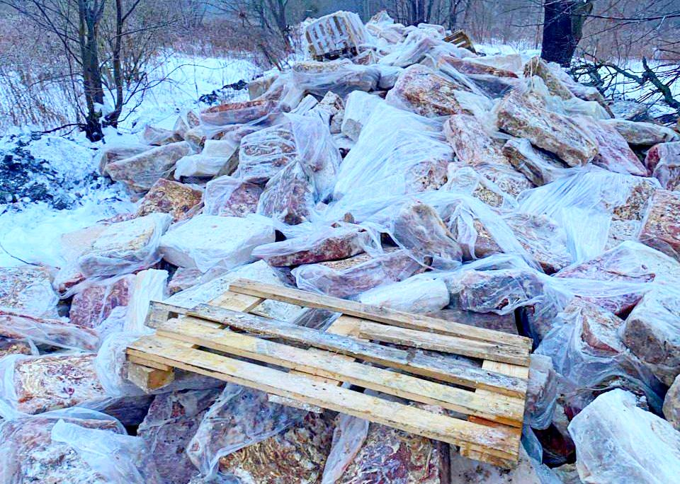 На фотографиях оттуда запечатлены не только кучи мяса, но и прилагавшиеся к ним документы. В кадр попало описание груза: 991 кг отходов кишечного производства, кишки, жир, мышцы, серозная оболочка были произведены в июне 2025 года, после чего при температуре в -18 градусов по Цельсия могли храниться только полгода. Даже если эту требуху держали в идеально холодной морозильной камере, она непригодна для приготовления чего угодно. Почему нельзя было утилизировать по закону?
