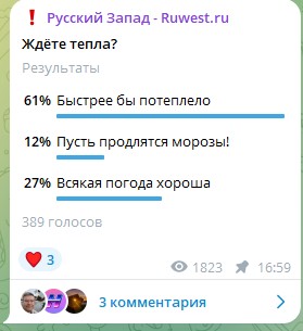 Люди настолько примёрзли, что не так часто оставляли комментарии в телеграм-канале «Русского Запада»: