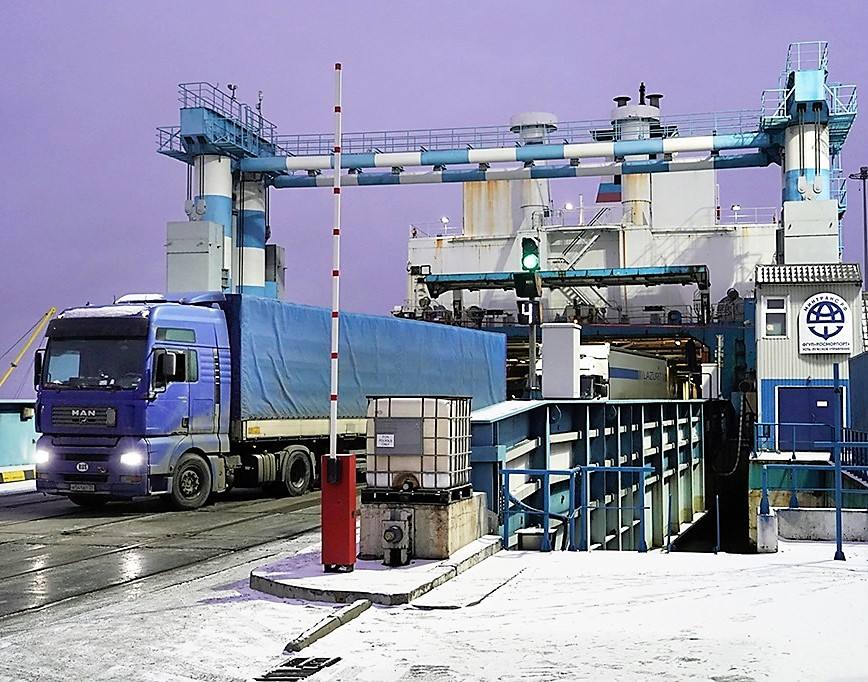 Ключевой момент для парома – стыковка с подъёмно-переходным мостом. Колея на палубе судна должна совпадать с железнодорожной колеёй на причале. Капитаны даже во льдах точно направляют суда, а буксиры помогают в точной стыковке.