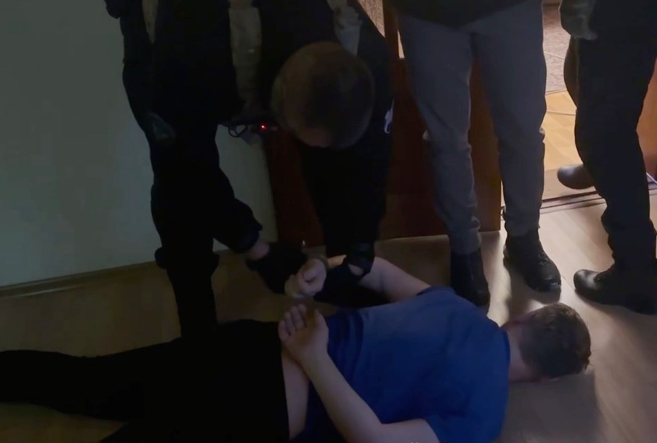 Судя по видео УФСБ, силовики нагрянули домой к мужчине рано утром. Обстановка в квартире выдаёт в подозреваемом семейного человека. Его положили лицом в пол и заковали в наручники.
