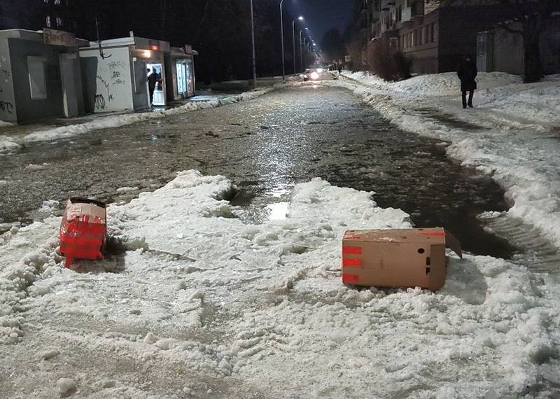 На дорогах возникнет гололёд, на колёса будет налипать мокрый снег. Подобная же ситуация, как рассказывал «Русский Запад», ждёт на тротуарах пешеходов с обувью.