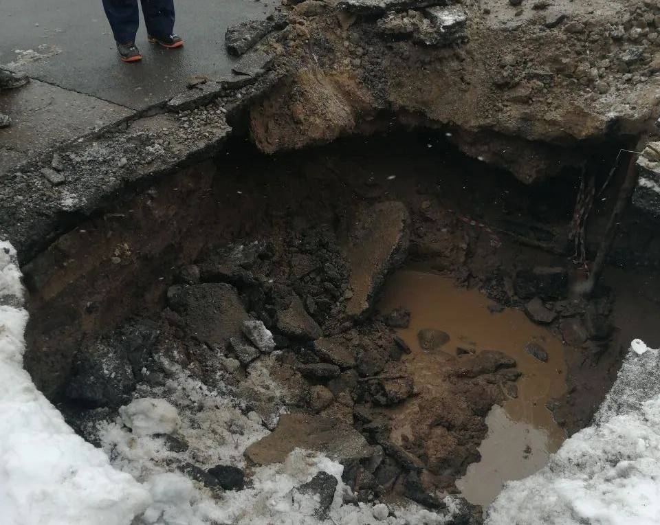 В субботу, 14 февраля 2026 года, в Черняховске проезжая часть стала пропастью. Асфальт ушёл глубоко под землю на улице Гоголя.