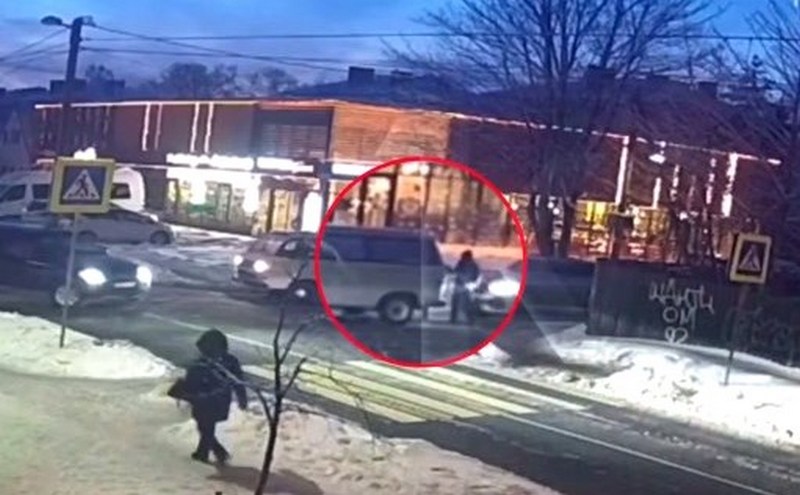 Очевидцы сняли на видео подростка, который при переходе дороги поскользнулся, но пытался устоять на ногах. В этот момент его сбивает внедорожник и прижимает к стоявшему впереди микроавтобусу. Есть также видео, на котором с перекрёстка отъезжают два автомобиля скорой помощи.