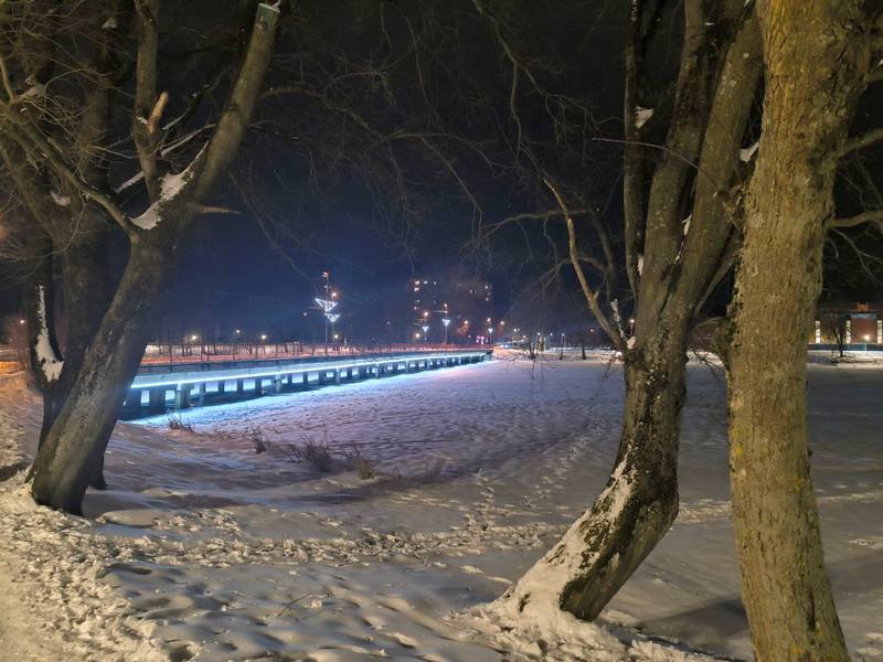 Глава города Аркадий Данилов с удовольствием внезапно порадовал горожан: на мосту через Тыльжу, наконец, включили подсветку, делающую сооружение парящим над водой... э-э, точнее, сейчас надо льдом.
