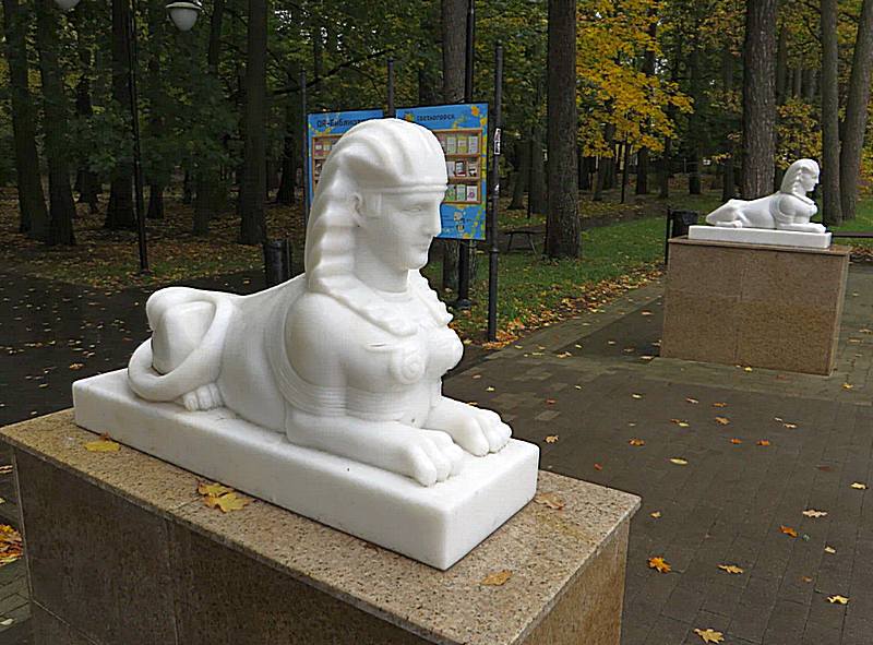 Между тем, по данным Информационно-туристического центра Светлогорского городского округа, у оригинальных сфинксов вполне себе длинная история. При немцах в 1906 году она стояли у отеля «Дюна» на улице Пляжной (ныне улица Ленина). В 1930-е годы их поставили у входа в Лиственничный парк.