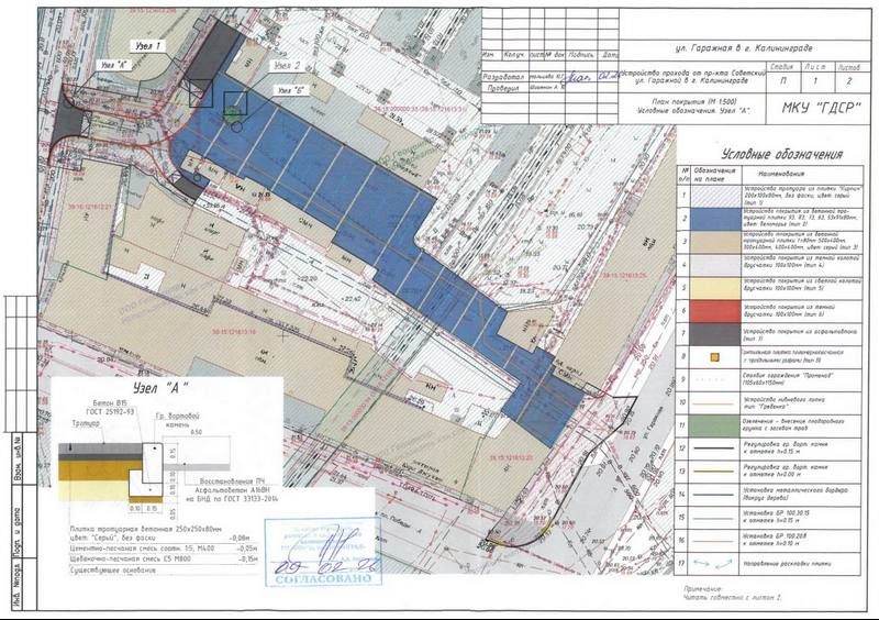 Основную часть площади покроют плиткой цвета «беломорье». Тротуар у Гаражной застелют плиткой типа «Кирпич». Предусмотрено создание подпорных стенок из брусчатки и бетона. Всё будет по-дорогому.