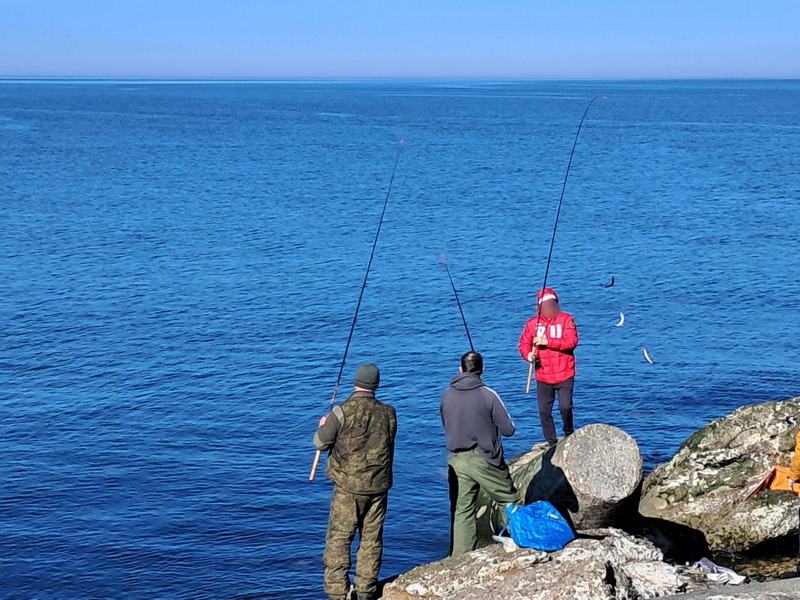 В понедельник, 9 марта, любители рыбной ловли облепили Северный мол. Удили местные и калининградцы. Последних, видимо, было больше - на вертолётной площадке у Морского бульвара машину поставить было негде, всё пространство запарковали.