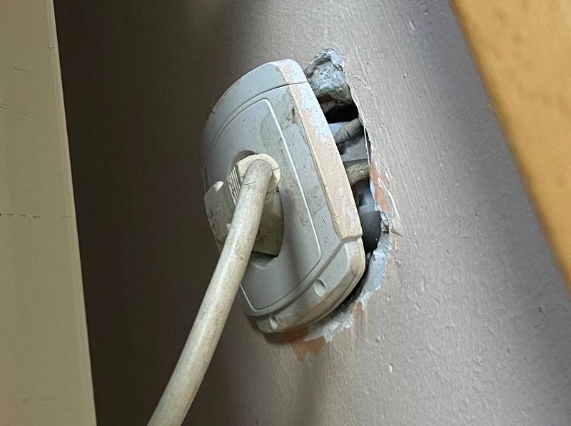 В подтверждение своих слов она публикует две фотографии: с отклеившейся со стены плиткой и с немного отошедшим от стены цоколем розетки (не критично, впрочем).