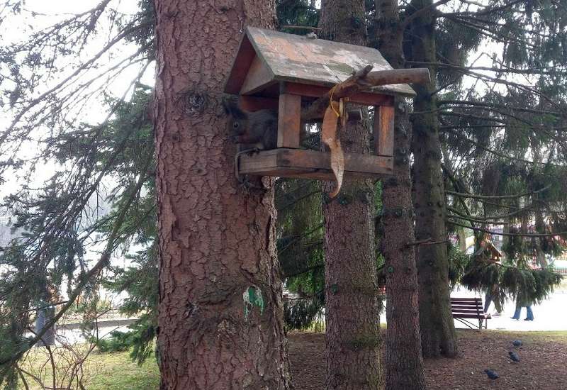В Центральном парке Калининграда белка объедала птиц