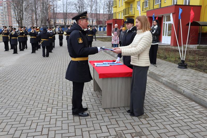 В Калининграде заместитель командующего Балтийским флотом вице-адмирал Вячеслав Родионов вручил военнослужащим ключи от новых служебных квартир.