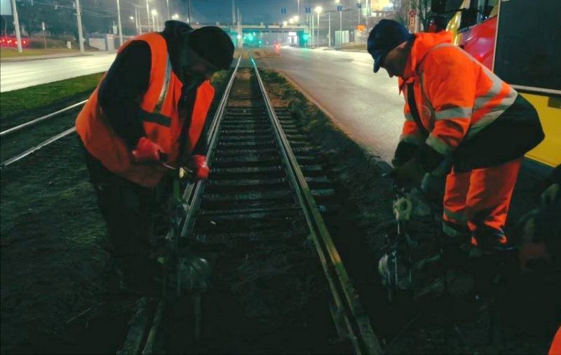 Уже заменены четыре рельса по 50 метров и положены 40 новых шпал. В планах – сделать столько же. Работы ведутся в тёмное время суток, «чтобы не перекрывать движение надолго».
