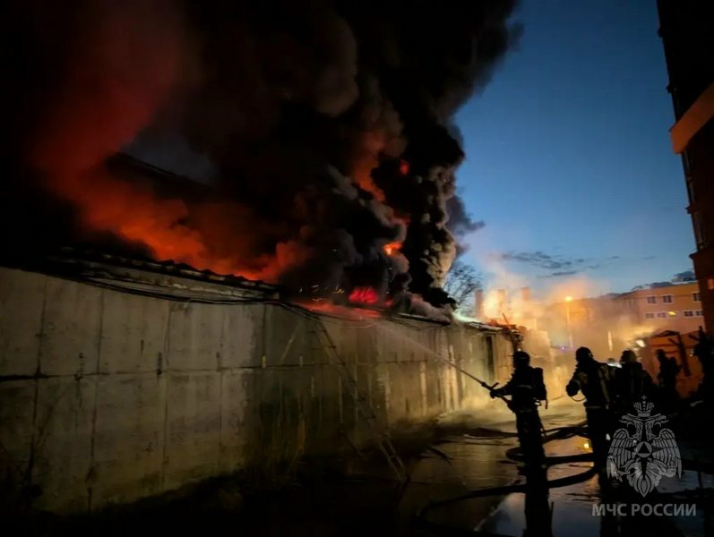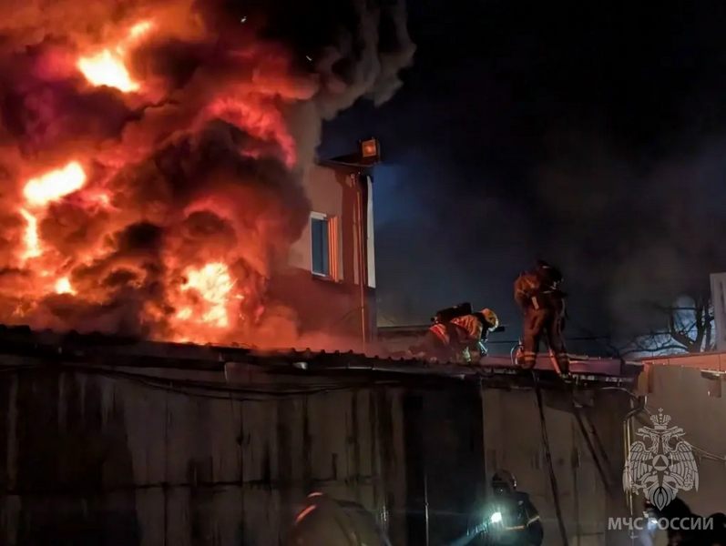 О возгорании в здании по ремонту микроавтобусов в экстренные службы сообщили в 4 утра. Площадь пожара составила 200 кв. метров. На место происшествия стянуты 13 спецавтомобилей, с огнём борются 58 сотрудников МЧС.