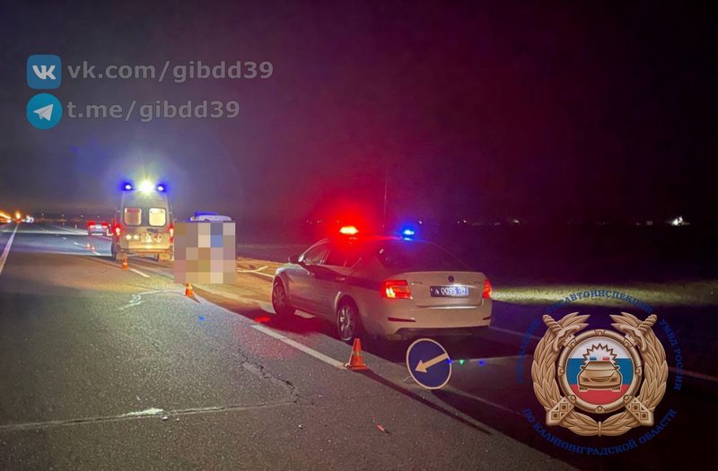 По сообщению Госавтоинспекции, трагедия на федеральной трассе случилась в 21:45. 37-летний водитель «Фольксвагена» гнал со стороны Черняховска и на тёмном отрезке дороги сбил пешехода. Как выразились в ГАИ, человек находился на проезжей части без светоотражателей на одежде.