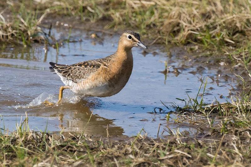 Услышала незнакомые звуки, включила приложение, определяющее породы птиц по их пению и нейросеть подсказала: это пастушок. Самец птицы вылез из лужи, позволил себя сфотографировать и убежал обратно — предположительно, к самке.