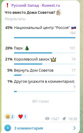 А за вариант национальный центр «Россия» (даже с учётом вброса порядка половины голосов в телеграм-канале «Русского Запада») ратуют только 17% респондентов.