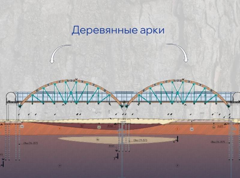 Как сообщает АО «ВАД», возводящее скоростную дорогу, на участке от Советского проспекта до Тенистой аллеи применят двухпролётные деревянные арки длиной по 37 метров. Они и будут удерживать над дорогой пешеходов.
